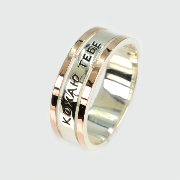 Обручка срібна з золотими пластинами "Кохаю тебе"