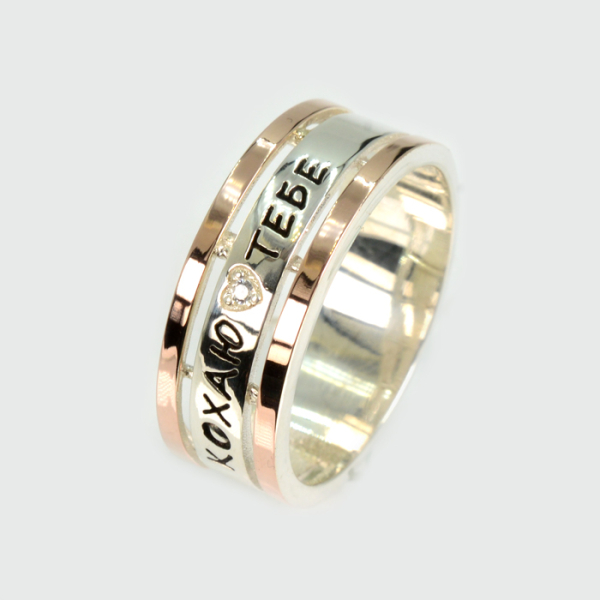 Обручка срібна з золотими пластинами "Кохаю тебе"