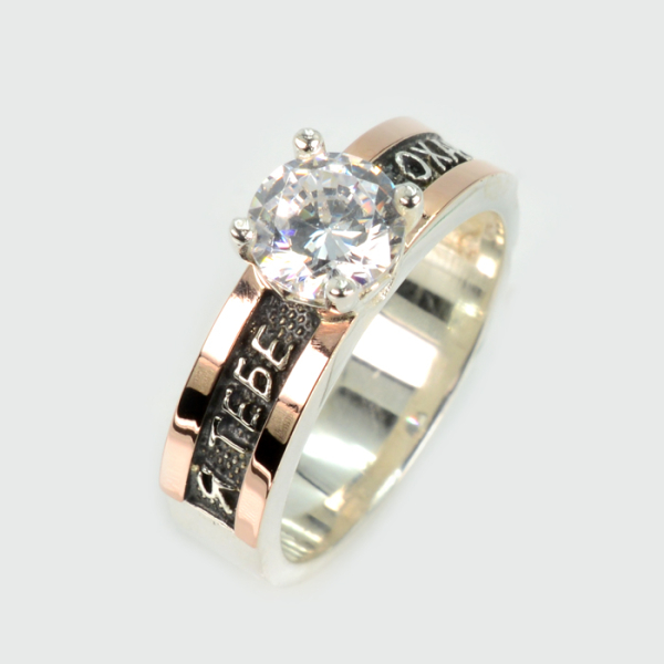 Серебряное кольцо с золотыми вставками "Я тебя люблю"