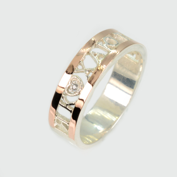 Серебряное кольцо с золотыми вставками "Я люблю тебя"